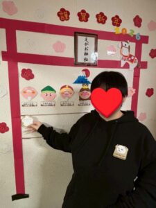 製作では絵馬を作り、えがおにも再びえがお神社が出来ました!
