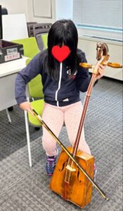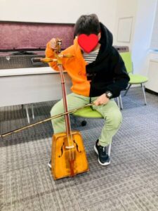 モンゴルの馬頭琴は鳴らすのが難しかったですが、音が出た時は喜んでいました(≧▽≦)