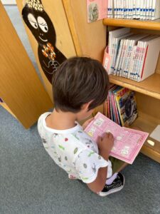 午前中から来ている未就学さんは中央図書館へ行き、絵本や紙芝居で読みの練習にも挑戦しました💫