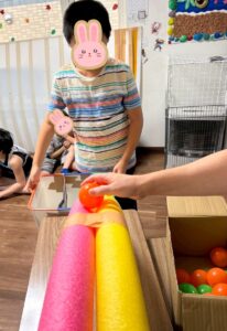 レクリエーションはボール転がしや、色分けゲーム🎱、ハイハイ競争などなど😌